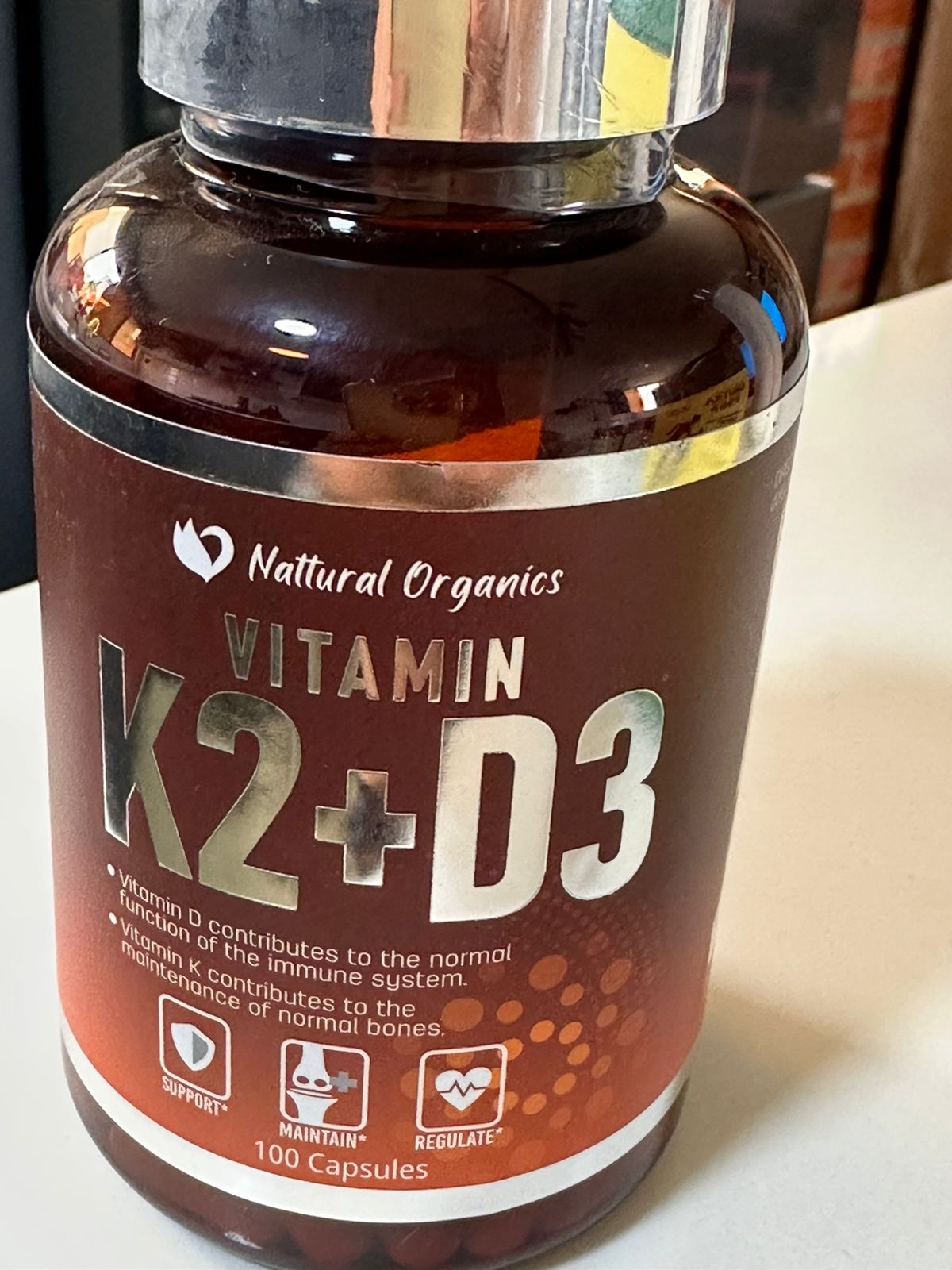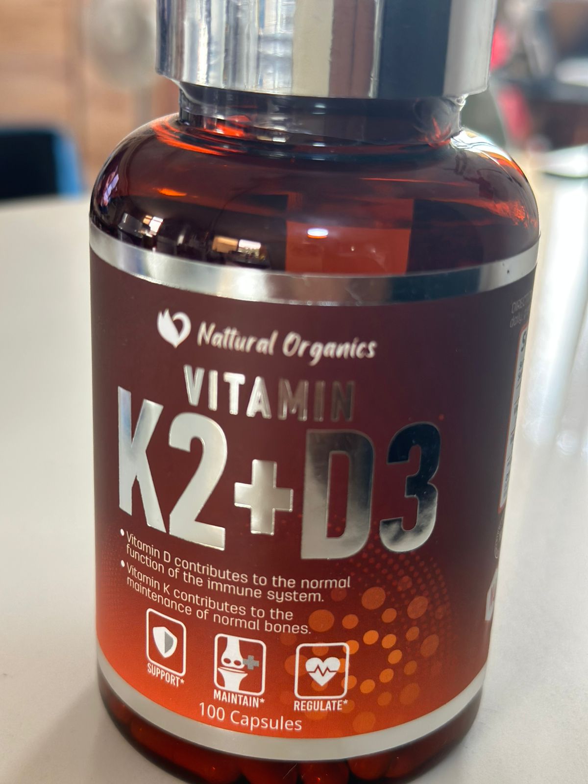 La vitamina D3 (colecalciferol) es esencial para la absorción de calcio en el organismo, mientras que la vitamina K2 (menaquinona-7 o MK-7) ayuda a dirigir el calcio hacia los huesos y alejarlo de las arterias y tejidos blandos, donde podría causar problemas de calcificación. Beneficios de la Vitamina K2 + D3 de Nutricost Fortalecimiento óseo: La vitamina D3 mejora la absorción de calcio en el intestino, y la vitamina K2 asegura que el calcio absorbido se dirija hacia los huesos, ayudando a mantener una estructura ósea fuerte y prevenir enfermedades como la osteoporosis.
